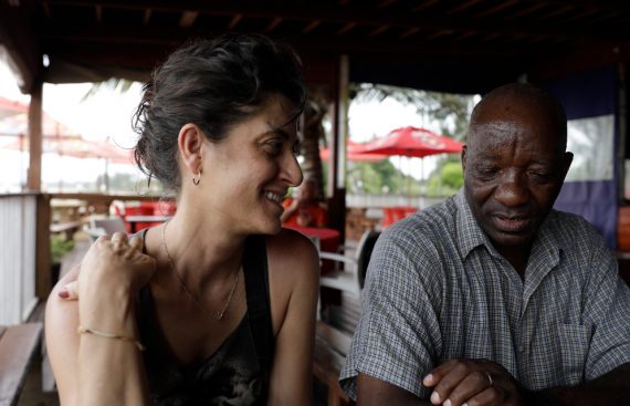 Nagore e Atanasio (logista de medicusmundi) falando durante a filmagem